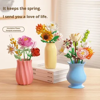 Plastik yapı taşları buket ebedi çiçek gül çocuk eğitim montaj oyuncaklar setleri toptan
